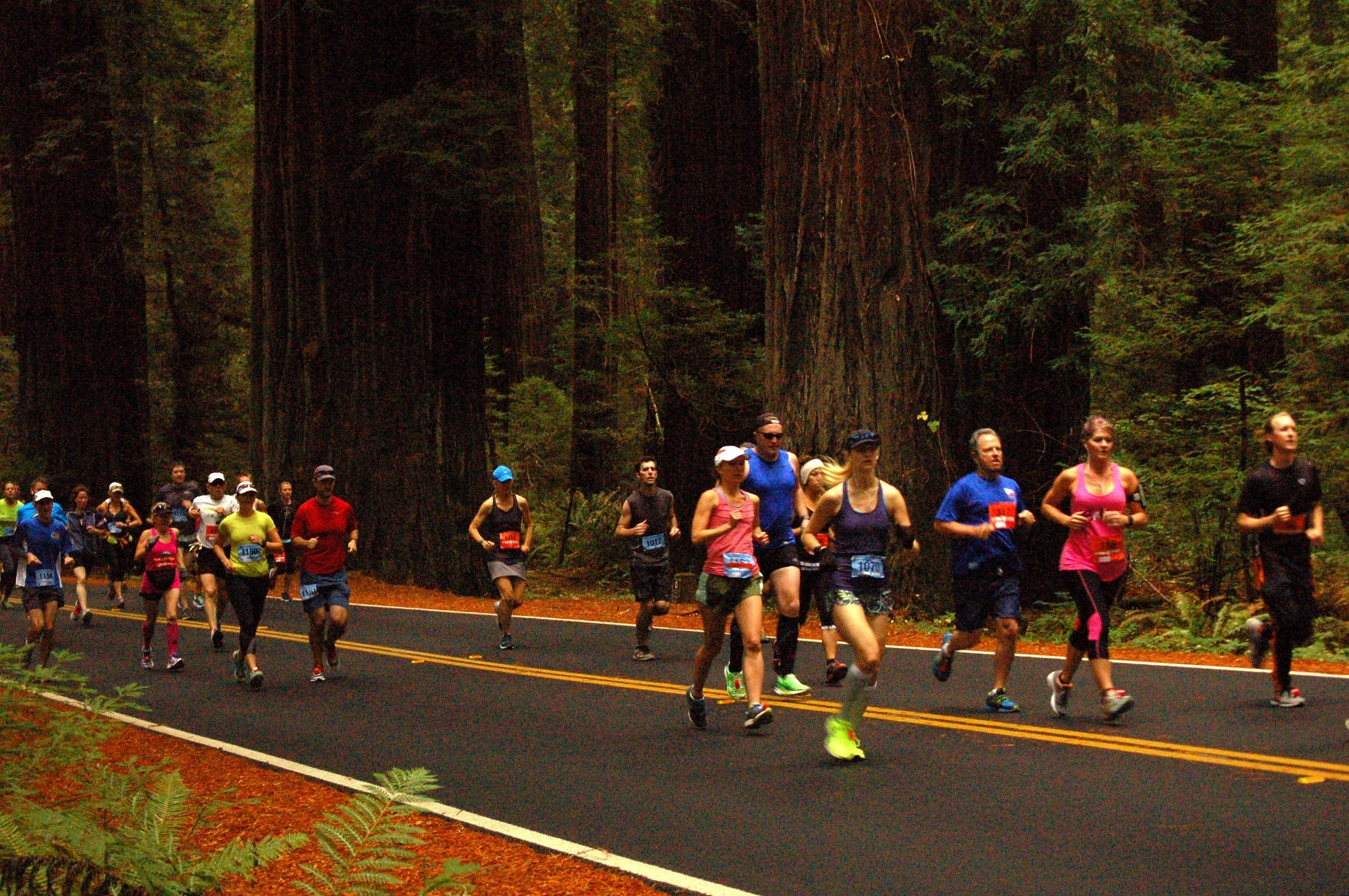 We'll forgive you if you have trouble concentrating on the road ahead of you while running The Humboldt Redwoods Marathon, Half Marathon, or 5K. After all, you'll probably be looking up at the old growth redwood trees which tower over the course.